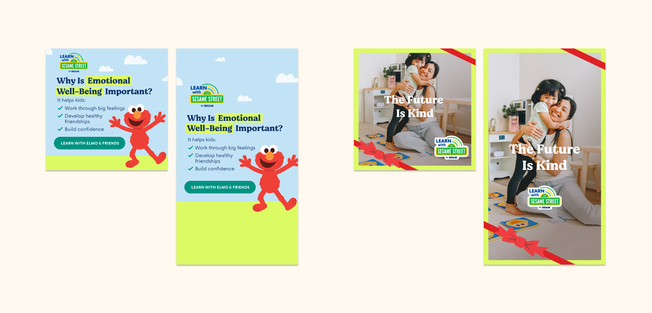In addition to developing a style guide to encompass both Sesame Street and Begin branding, I provided marketing support as these offerings were released, including the creation of emails, paid social ads, and app store assets.